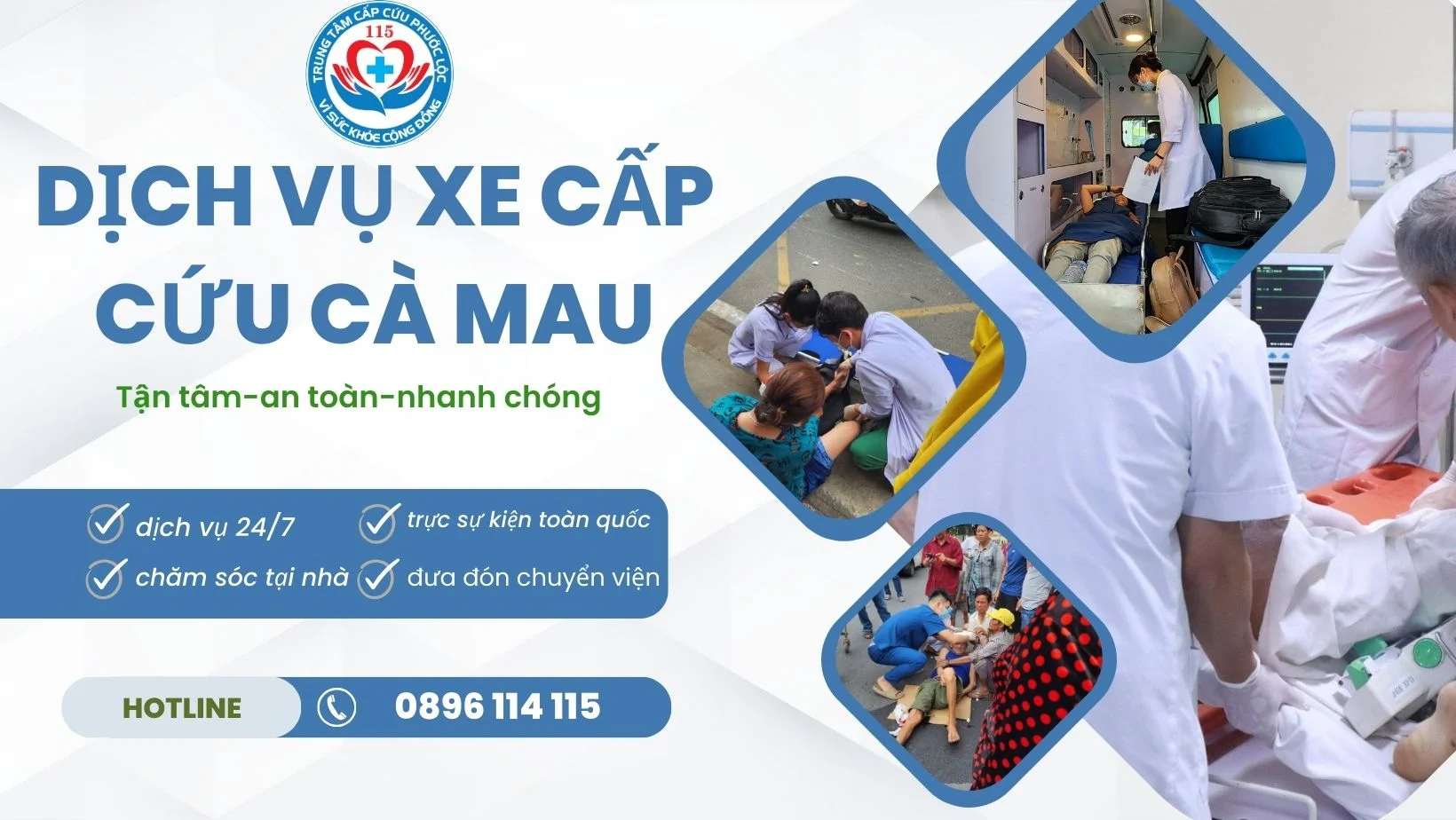 Khi cần gọi thuê xe cấp cứu Cà Mau đi viện hãy liên hệ ngay với trung tâm 115 Phước Lộc để cứu thương kịp thời,hotline hỗ trợ xe cấp cứu 0896 114 115